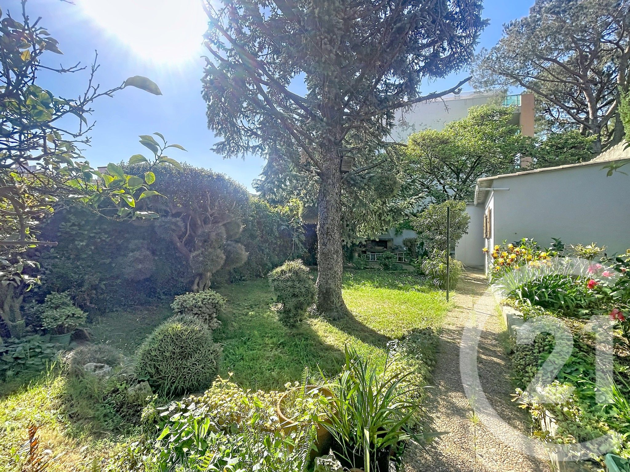 En contrebas, un jardin d'environ 200 m² en jouissance exclusive vous attend : arbres fruitiers, superbe cèdre, barbecue en pierre et un atelier cadastré de 18 m² complètent cet espace extérieur rare.